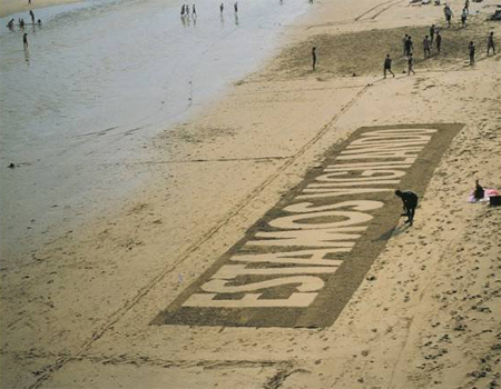 Daniel García Andújar. Estamos vigilando, 1994. Intervención en espacio público, imagen de la playa de La Concha, San Sebastián. Medidas variables. Cortesía del artista y MNCARS.
