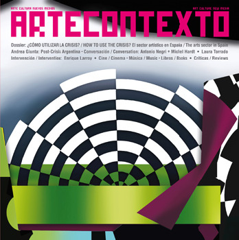Dentro del ámbito de la cultura el sector artístico presenta una especial fragilidad ante la crisis. Dificilmente enclavable en el término “industria cultural”, por su extrema fragmentación, la situación económica de nuestro país hace que aumente la precariedad de todos aquellos que, de un modo u otro, desarrollan su trabajo desde o en torno a las prácticas artistas, comenzando por los propios creadores. Sin embargo, el debate en profundidad sobre los problemas que nos afectan escasea. Hemos querido dedicar este dossier a recoger el análisis de los diferentes sectores (artistas, directores de museos, galeristas, críticos, comisarios, editores) así como las alternativas posibles. Por otro lado Andrea Giunta analiza la reacción de los artistas en la crisis Argentina, y Pedro Medina conversa con Antonio Negri y Michel Hardt. En páginas centrales se repasa la trayectoria de la artista Laura Torrado y, de nuevo, ARTECONTEXTO ofrece a sus lectores una obra específicamente pensada para ellos, esta vez de Enrique Larroy, quien también ha creado la portada de este número. La sección dedicada a exposiciones recorre los trabajos de artistas como Francesc Torres, Alighiero Boetti, Juan Hidalgo, Mitsuo Miura, Atsuko Tanaka, Lluis Hortalá, Laylah Ali, Abigail Lascoz o Sofía Jack y analiza las Bienales de Mercosur o Estambúl, entre otras citas internacionales. Se incluyen también las habituales secciones de libros, cine y música.